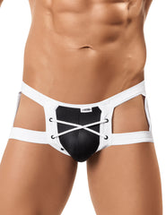 The CandyMan Lace Up Football Jockstrap is built for some serious support, thanks to the double straps in the back that also give you a sexy butt boost, by the way. The front features a lace-up design reminiscent of a football uniform, so wear this jockstrap when sporty-meets-sexy is in style.