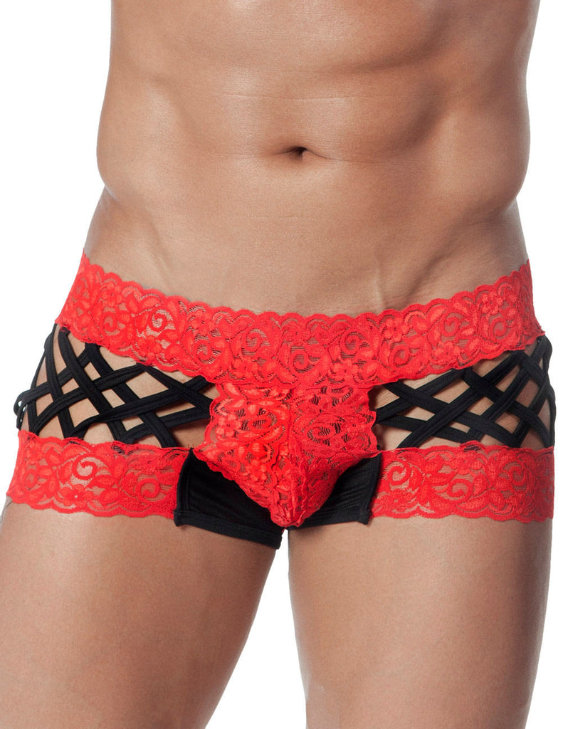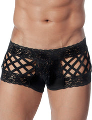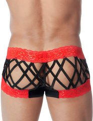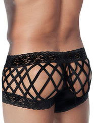 The Candyman open Back Boxer is a cheeky style, for those days when you really want your finest assets on display. Not only are they made from a light lace fabric that puts your body in the right light, the back is open, with several fabric straps to snap, for effect.