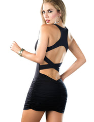 Hit the town and stop traffic in our new AM PM Women's Figure Flattering Mini Dress! This stylishly sexy dress features a sleeveless silhouette with a neckline, trendy racerback, ruched fitted bodice and flattering straight hemline.