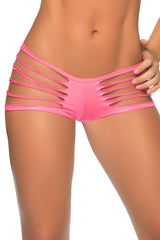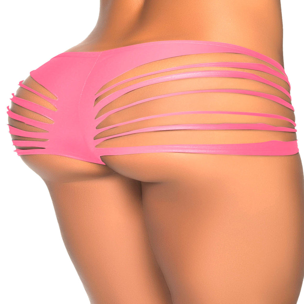 Get shredded! The slash effect of these wet look hipster panties flaunts the rear and the hips to perfection. The panties have a V-shaped rise for a flattering fit.
